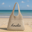 "This is literally my go-to summer bag now. Super light, and the custom name detail is so cute!"